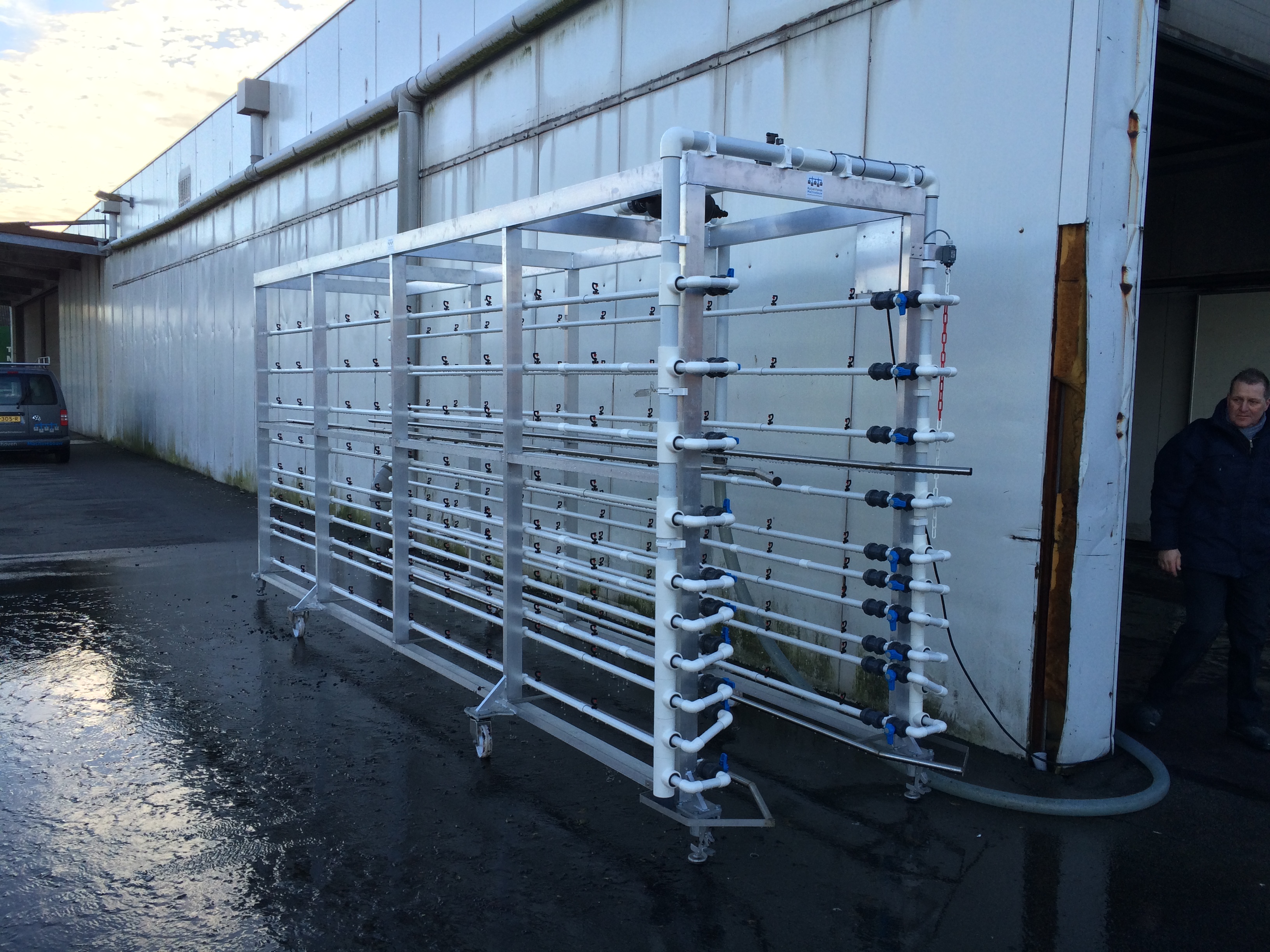 Geschikt voor het natbroezen van uw (deense) karren. In diverse combinaties mogelijk betreffende lagen/plaathoogtes. Lengte van de douche variërend van 1 tot 4 karren. Instelbare timerinstallatie voor broestijd. De sproeiers vernevelen horizontaal tussen uw gewas door.